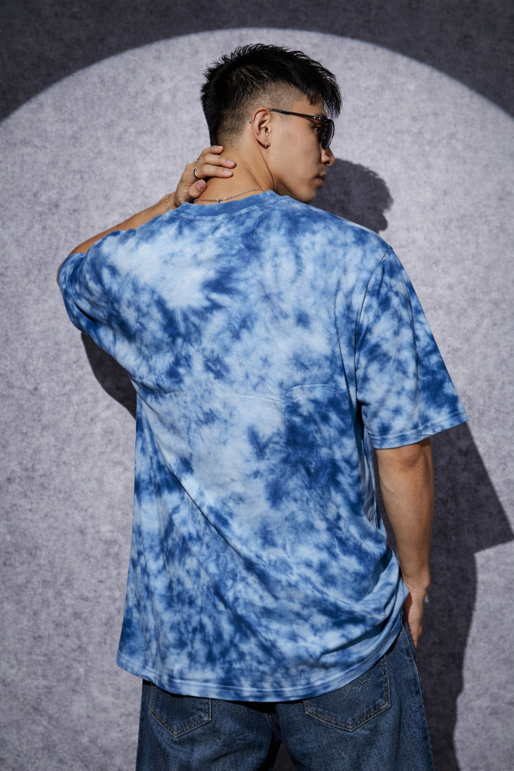 Blue Tie-Dye Oversized Graphic T-Shirt – Streetwear Casual Tee