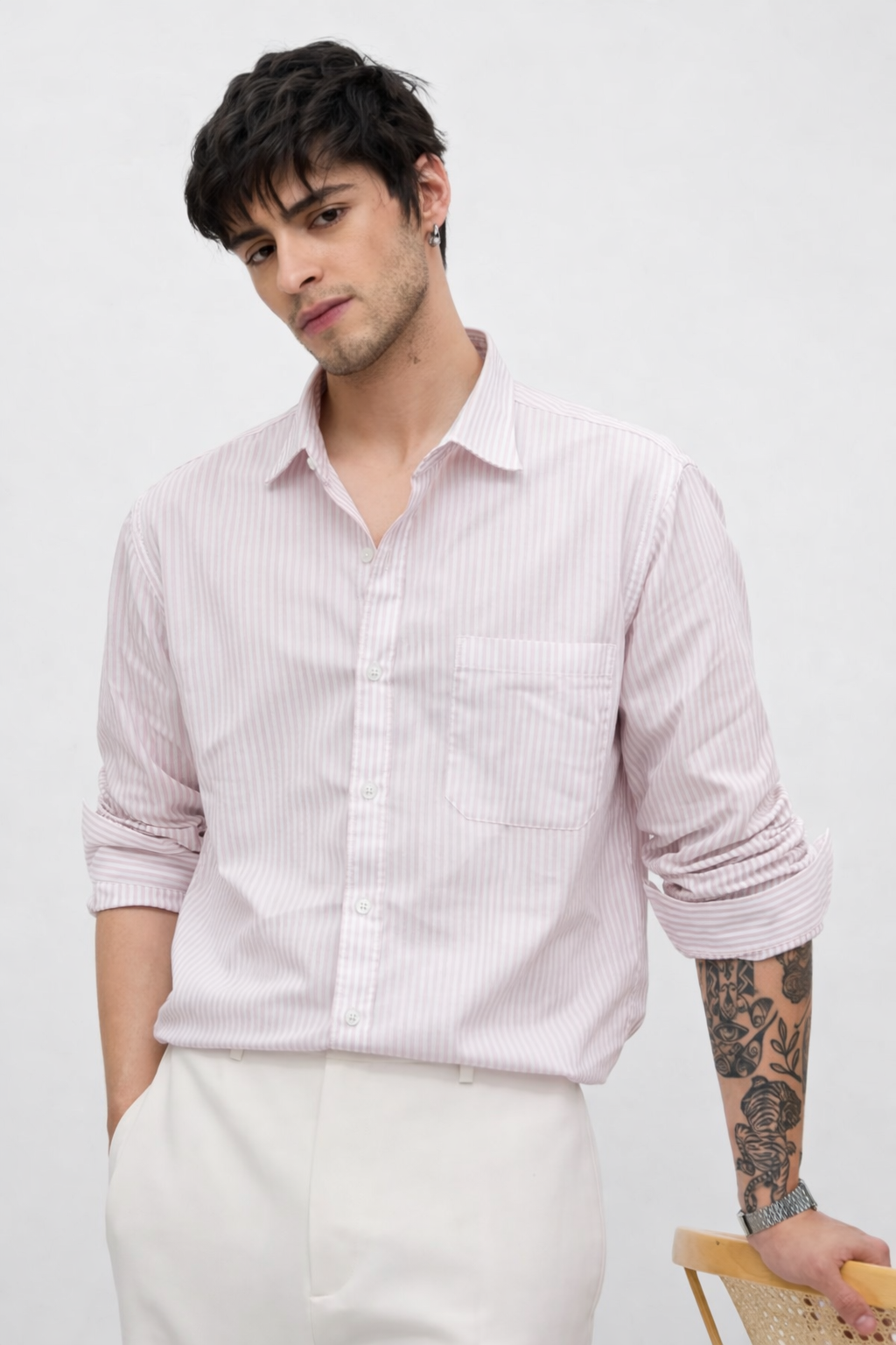 Light Pink Striped Slim Fit Cotton Shirt – Full Sleeve