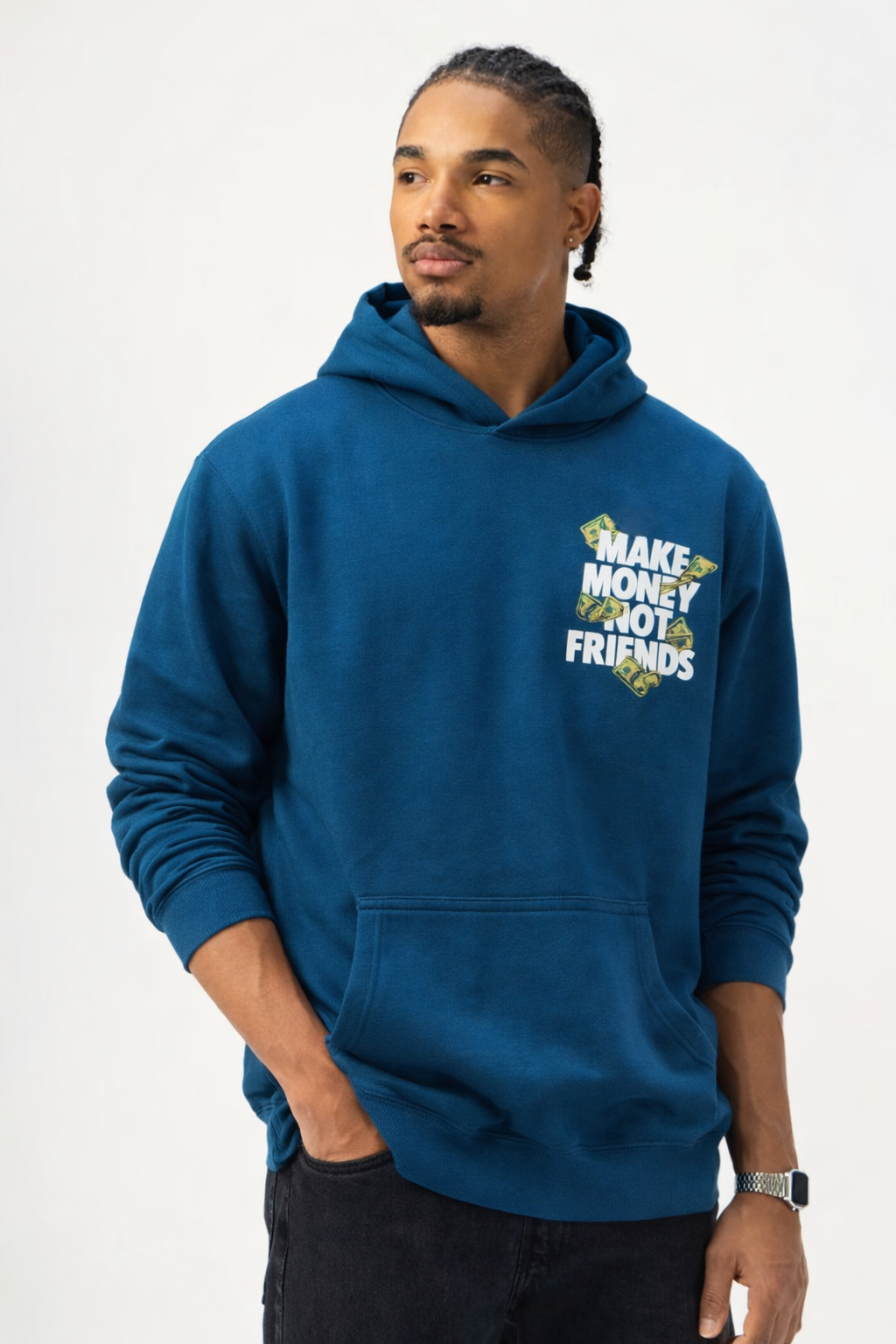 Teal Blue “Make Money Not Friends” Graphic Hoodie